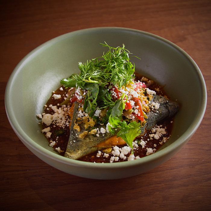 (350 g) En salsa verde, ensalada de esquites y queso fresco